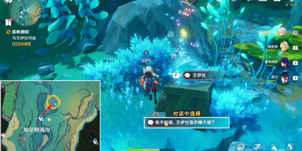 1、在埃尔顿海沟找到艾伊丝再次开启对话,选择选项框中的"我不知道,艾伊丝喜欢哪个呢";