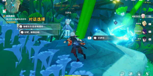 3、随后与艾伊丝对话,选择选项框中的"海螺实在很难操作"和"好吧麻烦你啦";