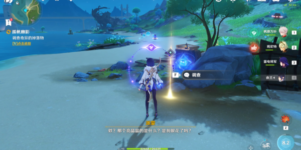 2、之后向西南方前进,靠近发光点与艾伊丝对话,再调查三个线索地点;