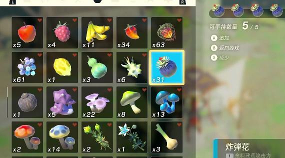 3、到达地面时再打开背包,能看到背包内的炸弹花数量没变;
