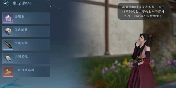 1、接着我们就把NPC需要的道具出示给她之后,进行对话就可以了;