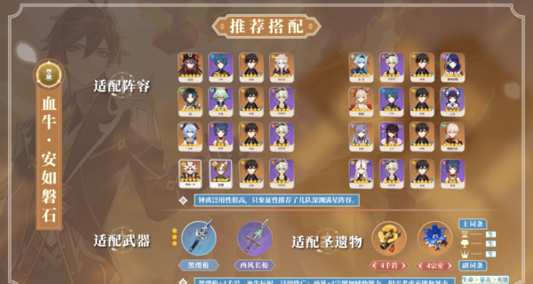 如果大家只是抽零命打辅助的话,武器首推黑缨枪,圣遗物首推四千岩;