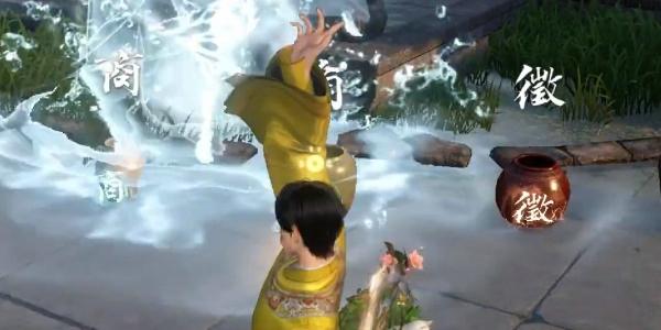 1、接着玩家需要根据瓦罐音律宫,商,角,商,角,徽的顺序,敲打瓦罐;