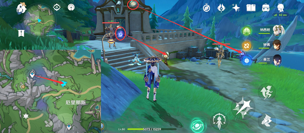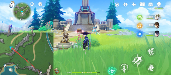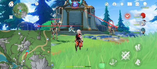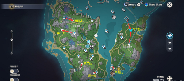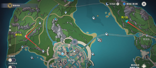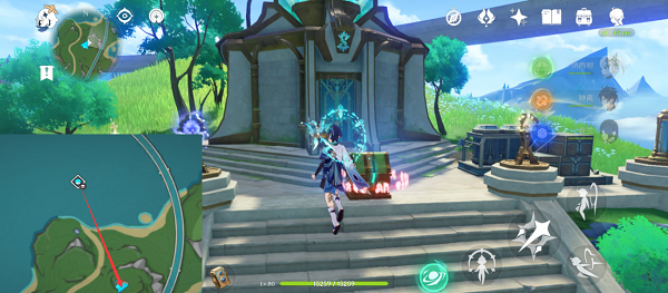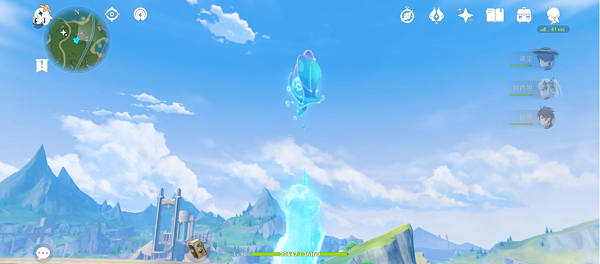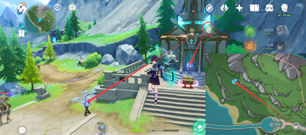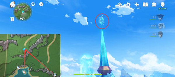 2、随后即可解锁珍贵宝箱(10原石)和风场,转送上去即可获取塔顶的水神瞳。