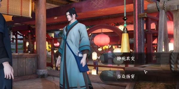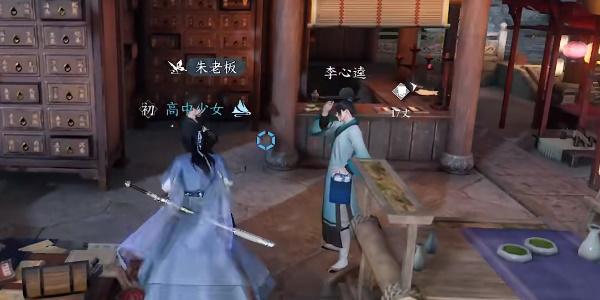 1、接着在(1099.1111)位置,找到朱老板进行对话,选择选项框中的"静观其变";
