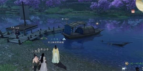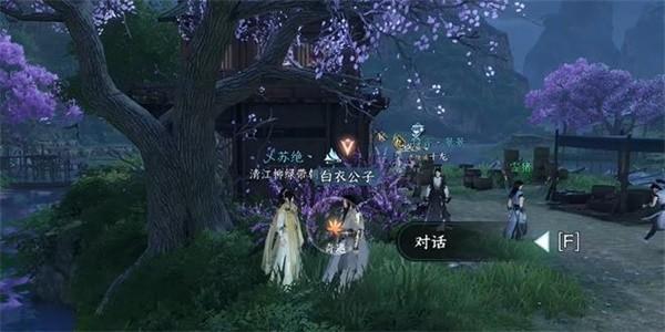 1、在对话过程中得知白衣公子想要看桃花,这时玩家需要带着他去观赏桃花;