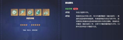 其次是各种2+2搭配了,同词条下,来歆余响会比沙楼套4件低5%左右,如果已经有一套词条优秀的余响4件可以选择直接使用,追求更高的伤害可以选择刷取沙楼4件套;