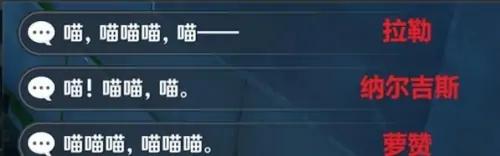 3、找到之后需要小猫对话罗赞选择喵喵喵,喵喵喵、纳尔吉斯选择喵!喵喵,喵,拉勒选择喵,喵喵喵,喵--;
